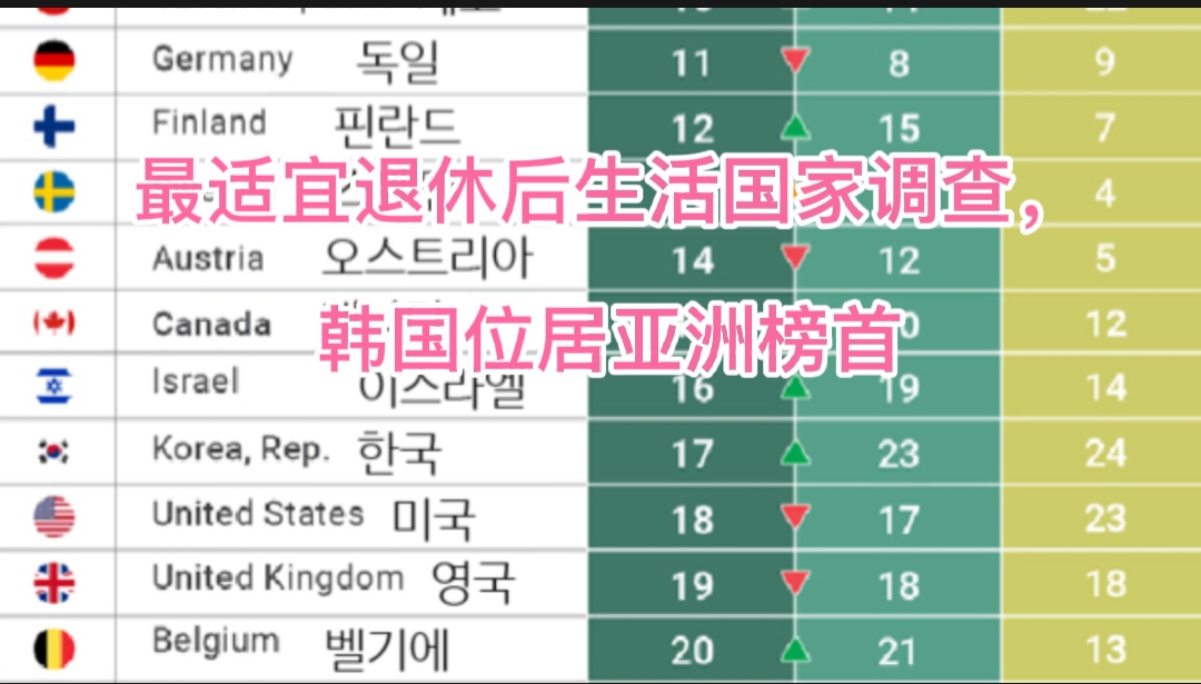 Youtube/油管:最适合退休后生活的国家, 韩国居亚洲榜首